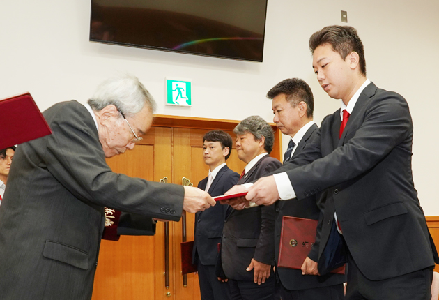 27日午前に市役所議場で当選証書を受け取った後、「しっかりと地域や関係各所でお話を聞き、市政に投げかけていきたい」と緊張気味に語った。