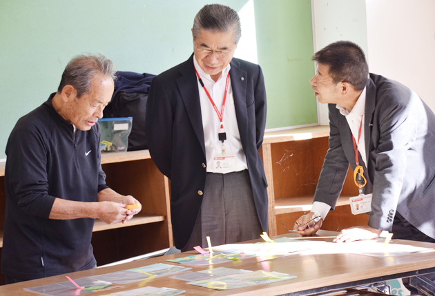 四谷の千枚田絵画コンクールで審査する審査員(新城市四谷の旧連谷小学校で)