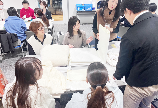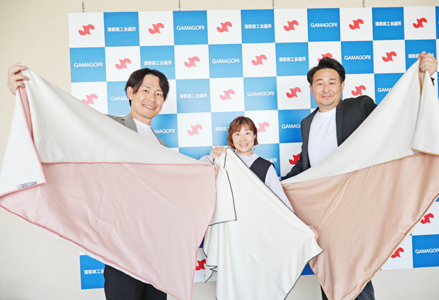 伴装の伴紘太社長は「縫製の細部まで職人技を盛り込んだ。温泉をまとうような感覚で女性を癒やすことができれば」。マクフライの代表社員、加藤翔さんは「冬場は起毛面を内側に、夏場はサテン地を内側にして通年使っていただけます」と太鼓判を押す。