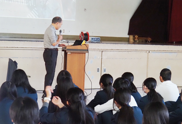 豊橋市の県立豊丘高校で30日、防災講話が開催された。同校が岩田校区の第二避難所に指定されていることから、地域との連携を深め生徒の防災意識を高めようと企画された。全校生徒約800人が参加した。