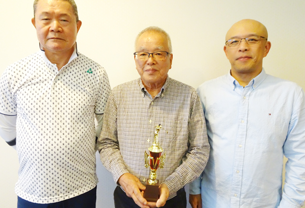 左から準優勝の上村康夫さん、優勝の岩本萬喜男さん、3位の森道徳さん