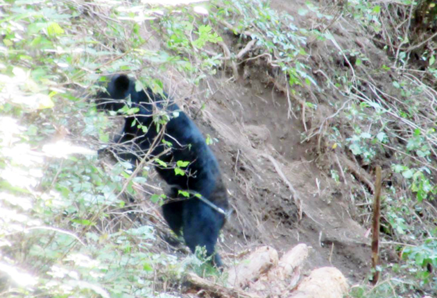 わなにかかったツキノワグマ(新城市池場で、市提供)