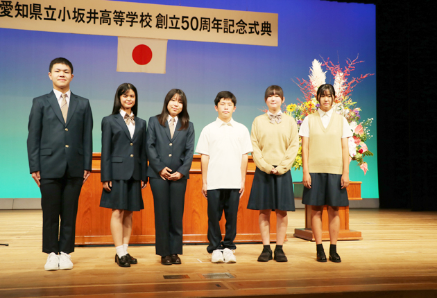 豊川市の県立小坂井高校の創立50周年記念式典が30日、同市文化会館で開かれ、来賓や卒業生、在校生合わせて約980人が参加し、半世紀の節目を祝った。