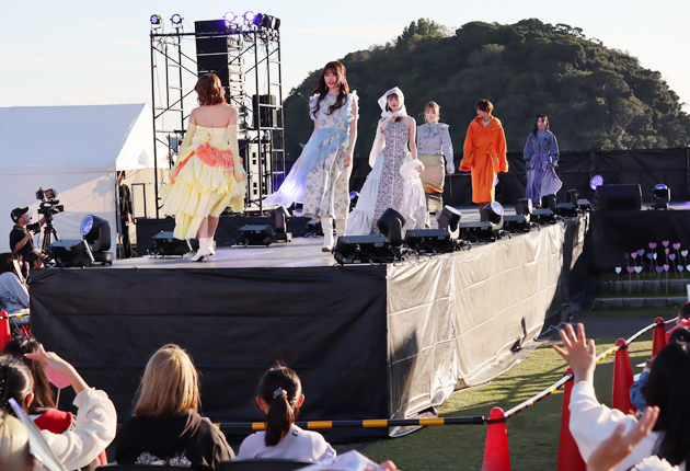 TGCプロデュースステージで竹島を背景に歩くモデルたち(蒲郡市・竹島園地で)