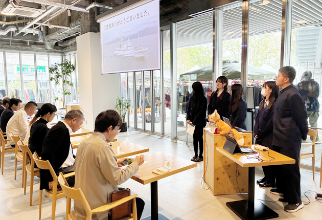 プレゼンテーションする生徒たち(emCAMPUSで)