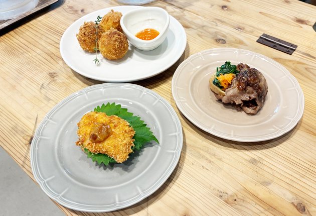 国府高校は、フードロス削減や地産地消をテーマに、地元の食材を生かし、いなり寿司を作る際に出る破れた油揚げを活用した商品を考案。衣をつけて揚げることで破れた油揚げを使えるよう工夫した。「食べ歩きもでき、インスタ映えもする。冷凍食品にすることで手間を省き、お土産にもできる」などとプレゼンテーションでPRした。他の2校も工夫を凝らしたいなり寿司をアピールした。