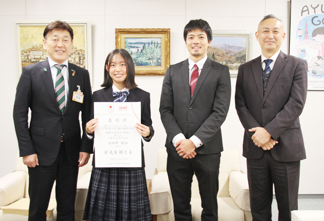 原田教育長は「大舞台で素晴らしい走りだった。亜由子さんを超えられるように、けがに気をつけて記録に挑戦して欲しい」と話した。