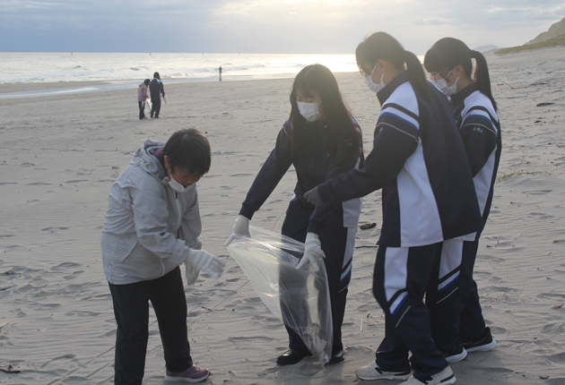長らく続けていた表浜海岸の清掃は、新型コロナウイルスの影響により中断しており、数年ぶりの実施となった。学校に近い可知記念病院(南大清水町)の協力を得て送迎バスで海岸に向かい、障害のある市民ともふれ合いながら地域貢献の思いも高めた。