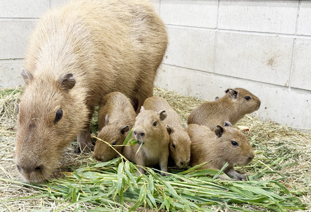 カピバラの「めめ」(左端)が生んだ5頭の赤ちゃん=蒲郡市竹島水族館で(同館提供)