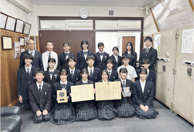 小林部長は「受賞を聞いたときは驚いた。賞状を見てやっと実感できた。仲間と対立したり、先生に怒られたり、つらいことも多かったのでうれしい。部活動の練習時間が限られている中で頑張った」と喜びを語った。同部は、2021、22、24年にも同コンテストで文部科学大臣賞を受賞している。