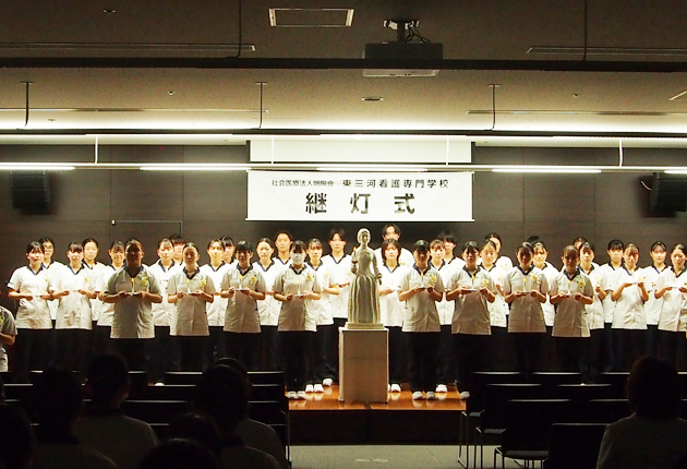 社会医療法人「明陽会」が運営する豊橋市羽根井本町の東三河看護専門学校(神谷厚校長)は7日、同法人の成田記念病院で第25回生の「継灯式」を開いた。1年生38人が、理想の看護師を目指して学び続ける決意を新たにした。