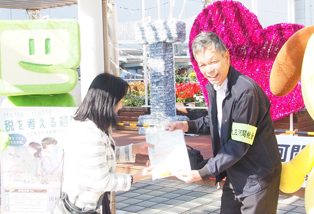 豊橋税務連絡協議会が豊橋駅東口駅前広場で広報活動