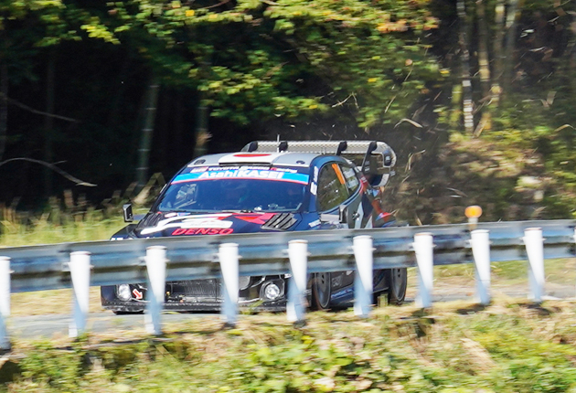 愛知県出身の勝田貴元選手=トヨタGAZOOレーシング=は新城SSの1本目をトップで通過するなどし、2日目までで本大会の総合2位に付けている。