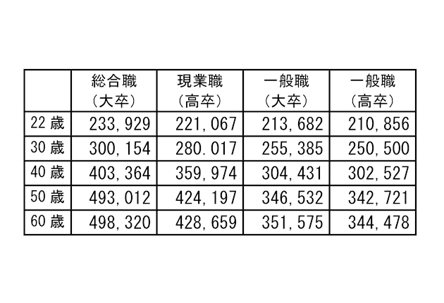 40歳モデル賃金の月額平均は、大学卒総合職が40万3364円、高校卒現業職が35万9974円、大学卒一般職が30万4431円。管理職の賃金は、平均53・1歳の部長相当職が57万8951円、49・2歳の課長相当職で46万8811円だった。