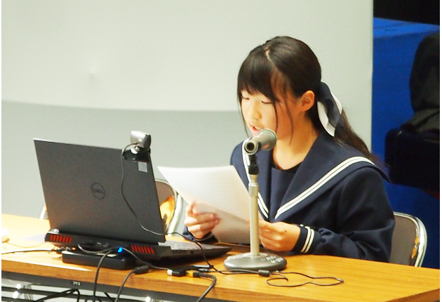 発表する吉田さん(豊橋市視聴覚教育センターで)
