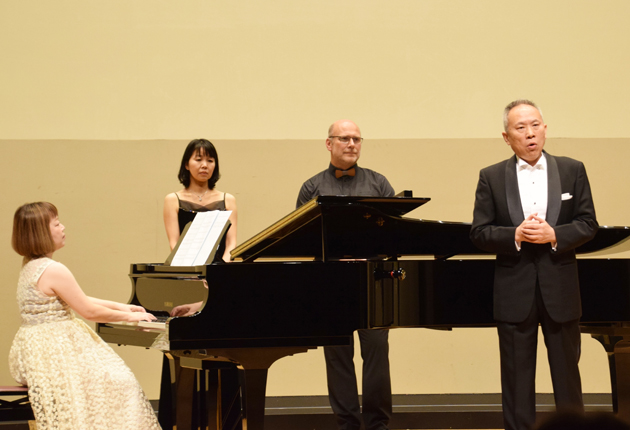 8日には、50周年記念前夜祭として、連盟主催の「世界に広がるジョイ・ジョイント・コンサート」が同会館小ホールで開かれた。中国天津市出身で新城市在住のバリトン歌手の毛慧(MaoHui)さんが、「オペラ『フィガロの結婚』より『もう飛ぶまいぞ、この蝶々』」「落葉松」など7曲を歌い上げた。力強くも柔らかい歌声が会場を包んだ。市内在住のピアノ奏者・夏目順子さんが伴奏を務めた。