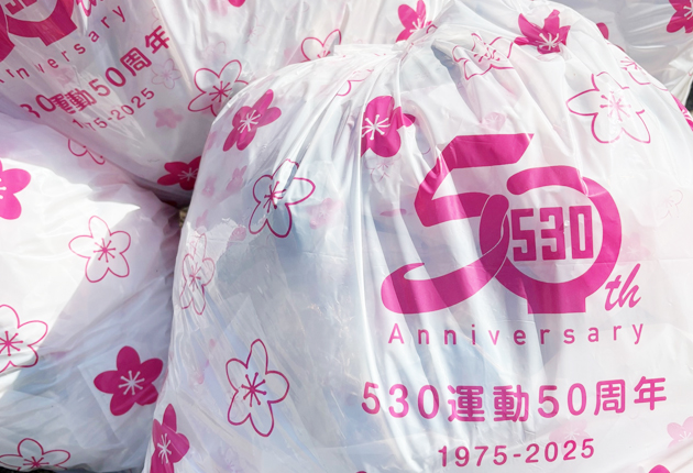 530運動50周年を記念するデザインのアートごみ袋(提供)