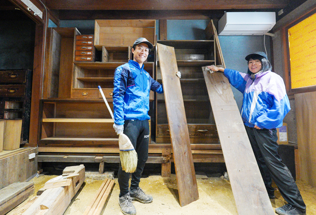 子どもからお年寄りまで立ち寄れる私設図書館を作ろうと、東栄町の伊藤拓真さん(30)=町観光まちづくり協会統括マネジャー=と詩織さん(37)の夫婦が、かつての商店街で空き家のリフォームを進めている。年明けのオープンを目指し、運営に関わってくれる本棚オーナーらを募集中だ。