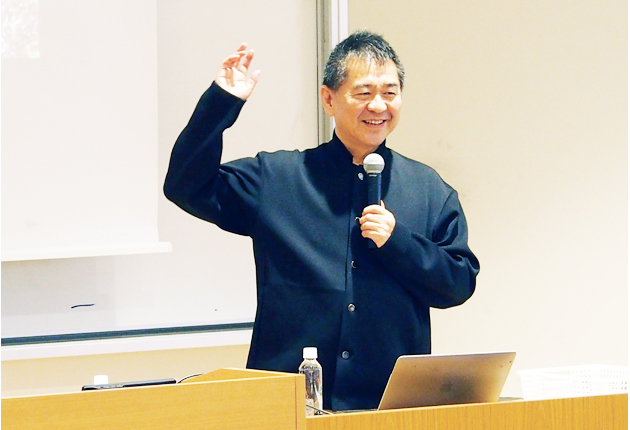 講演する羽根さん(豊橋技術科学大学で)