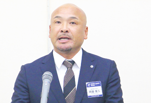 次年度への抱負を述べる新会長の岡田さん(豊川商議所提供)