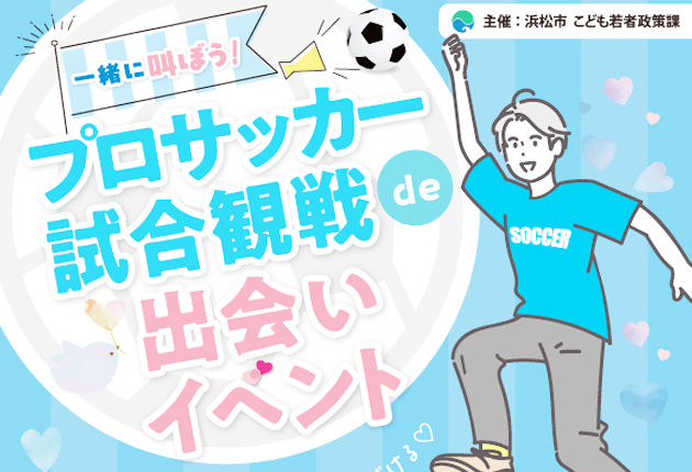 浜松市は29日午後1時15分から、同市中央区のコミュニティースペース「Any」で「プロサッカー試合観戦de出会いイベント~ゴールの歓声が二人の距離を近づける~」を開催、参加者を募集している。 同日はJ2とJ3の今季最終節が予定され、J2で...