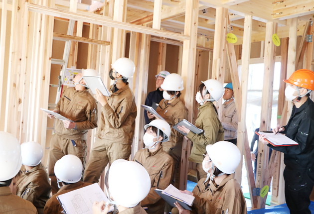 県立豊橋工科高校建築デザイン科の生徒ら/木造住宅の建築を見学