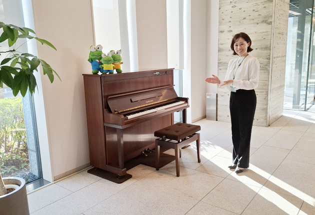 設置されたピアノ(蒲郡市・蒲郡信金本店で)