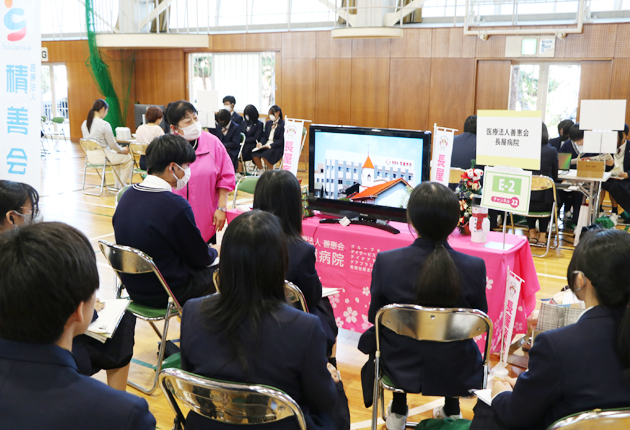 商社や医療・福祉の話を聴いた田村将輝さん(15)は「自分が知らない企業について知ることができ、どの業種もいい仕事だと思った」と話した。伊藤杏さん(16)は「社会のいろいろな変化に対応するというサービス業の話を聴いてすごいと思った。業種を決める時の参考にしたい」と語った。