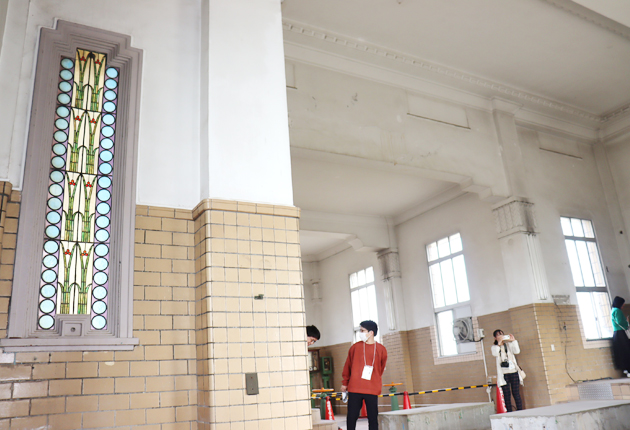 旧ポンプ室では出入り口の左右にはめ込まれたステンドグラスや、柱上部の華やかな装飾に見入った。水質測定に使われていた地下室にも潜入。実用性と装飾性を兼ね備えた造りに目を輝かせた。