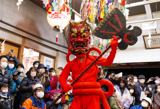 11月~翌年1月に北設楽郡の14地区で催される花祭は、勇壮な鬼の舞などを披露する伝統行事。見物客は3000円程度を包んで運営に協力するのが習わしで、地区によってはお返しに記念の品が渡される。