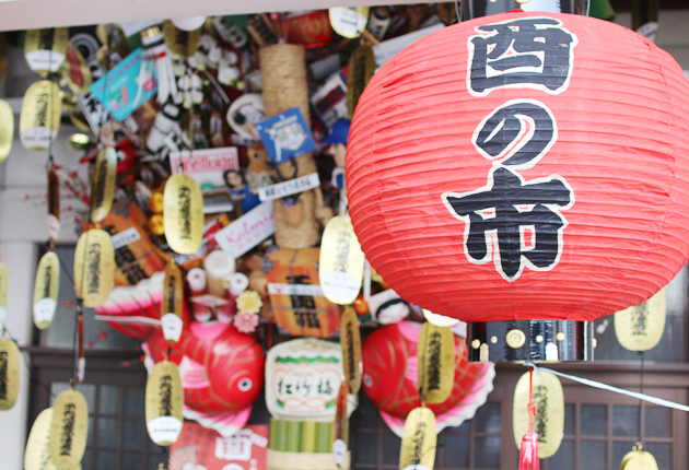 酉の市は、両日とも午後3時~8時まで。熊手は本場・浅草のものを中心に並び、宝船やだるまが販売される。購入した縁起物は本堂で祈祷(きとう)・お精入れを受けることができ、希望者は「手打ち隊」により「商売繁盛、益々繁盛、大繁盛」のおめでたい掛け声と手拍子で景気をつけてもらえるという。