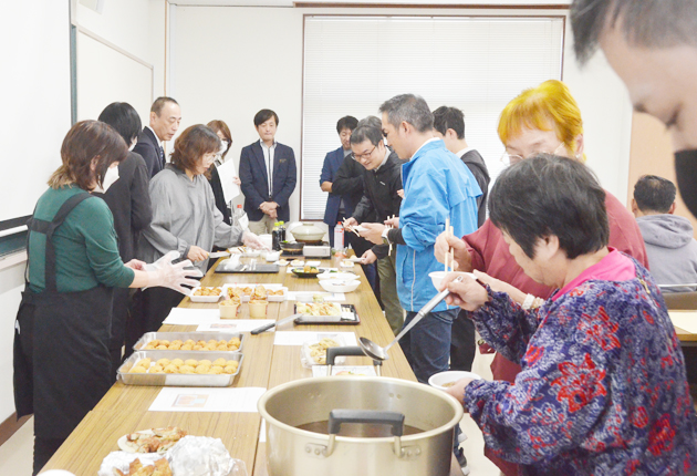 冷凍保存されているすり身は年間を通じて利用でき、多彩な調理が可能。今月17日に開かれた試食会では、飲食店や宿泊施設などが考案した12品を持ち込んだ。団子状に練ったつみれの鍋やつみれ汁、はんぺん、フライなどがあり、出品者はすり身に何を合わせるのがいいか考えるなど工夫を凝らしたという。