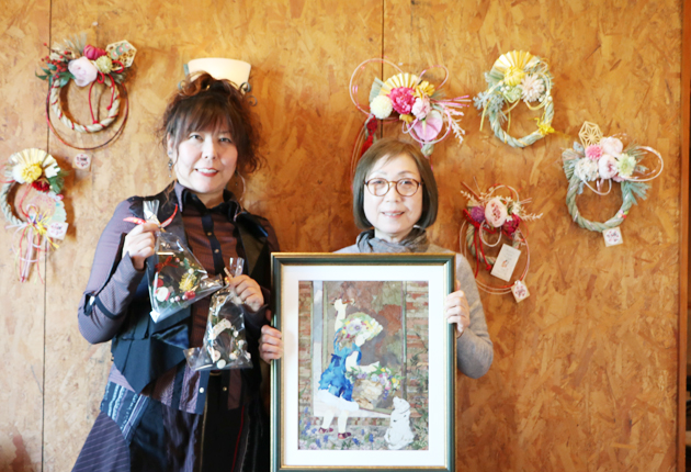 伊藤なつこさん小田麻規子さん/豊川で24日まで「花と押し花の二人展」