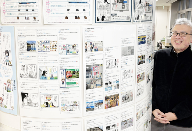 だも豊の展示を一手に担っている同課の鈴木彩太主査は「活用したものをまとめたら、思った以上に量があった」と感慨深げ。漫画を使った市政情報の発信は「分かりやすくて、注目してもらえる」と効果を実感している。