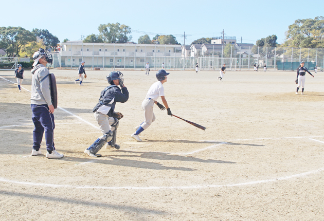 同校野球部2年の原田祐一郎君(13)は「土曜の部活がなくなったので、物足りなさを感じていた。知らない選手とのプレーは緊張するが、技術を見ることができる良い機会」と同世代とのプレーを歓迎する。