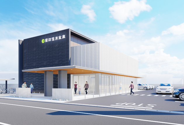 新店舗は、鉄骨造2階建て。来客用駐車場には17台が駐車できる。支店は「これからの時代にふさわしい〝地域に根ざした金融機関〟として地域住民や事業者に応えていく」という。
