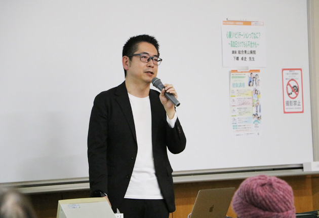 講演する下郷卓史心臓リハビリテーションセンター長(豊橋創造大学で)
