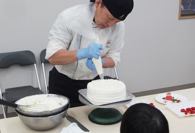 プロのクリスマスケーキ作りを間近で見学した(豊橋若草育成園で)