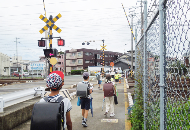 西小坂井踏切は、西小坂井駅の西側約300メートルにある。小坂井西小の全校児童のうち半数以上が登下校で利用。朝の登校時には車や中高生らの往来も多く、快速電車や車列の長い貨物列車も走ることで、遮断機がなかなか開かない〝開かずの踏切〟でもあり、児童らは危険と隣り合わせだ。