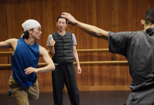 公開されたリハーサル。小㞍さん(真ん中)が細かく振りの確認をしていた(穂の国とよはし芸術劇場プラットで)