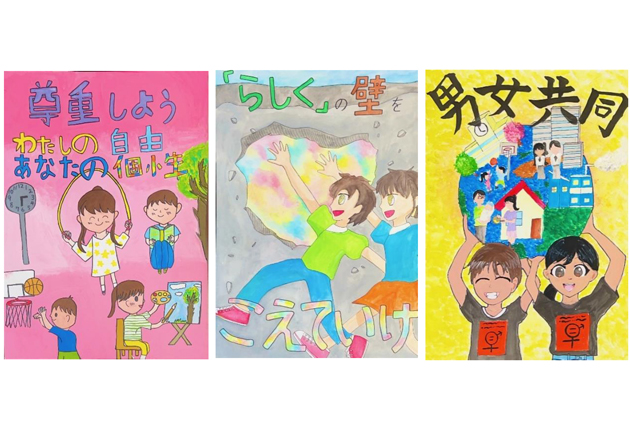 作品は、関連情報誌「ゆい」や広報啓発に使われるほか、12月8日から19日まで市役所1階ロビーで、23日から来年1月5日までプリオ4階で、3月8日には人権・男女共同参画講演会が開かれる市文化会館ロビーで展示される。
