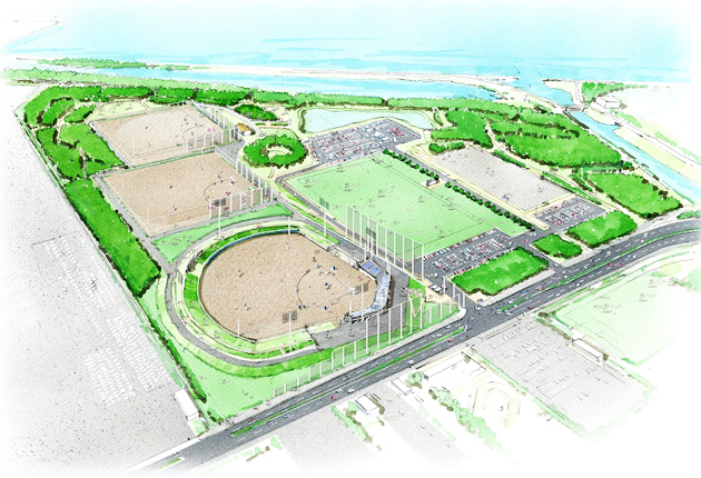 豊橋市は28日、新たな野球場を三河湾沿岸の豊橋総合スポーツ公園B地区に整備すると発表した。球場移設計画は、基本設計の予定地で再び動き出す。