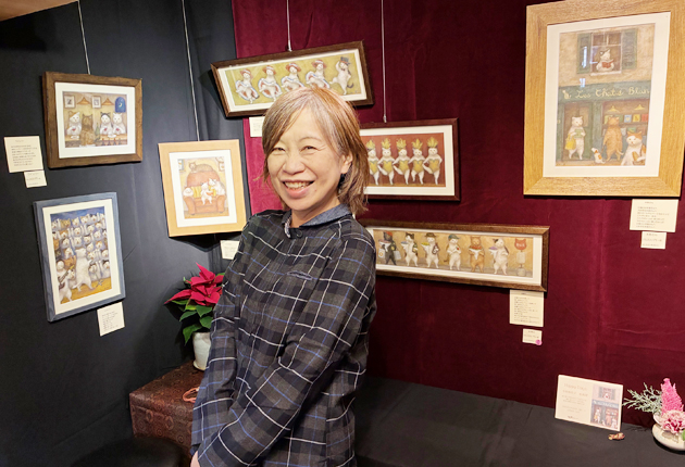 横浜市の画家、布施和佳子さんの絵画展がこのほど、豊橋市東田町の「猫庵ジェントリー」で始まった。猫をモチーフにした絵画が展示され、ファンらでにぎわっている。 小学生の頃から、たくさんの猫たちの中で育ったという布施さん。今まで一緒に暮らしてき...