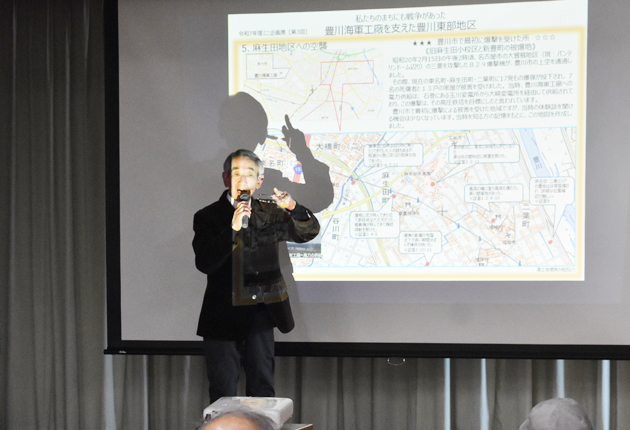 豊川市の麻生田連区市民館で30日に開かれた「麻生田連区まつり」で、三上連区生涯学習推進員の宮下喜夫さんによる講話があり、豊川東部地区にまつわる戦争の歴史を紹介した。 宮下さんは1945年8月7日に豊川海軍工廠(しょう)が米軍の空襲を受ける...