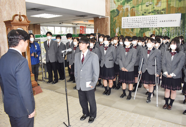 全国大会に向けて意気込みを誓った高校生たち(豊川市役所で)