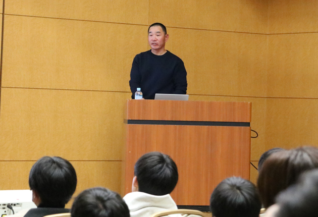 未来の高校球児にメッセージを贈る林監督(豊川市民プラザ穂の国で)