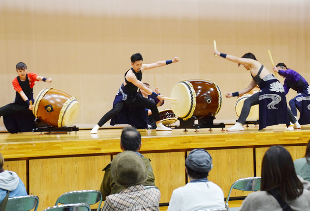 会場の体育館横には、13のキッチンカーが並び、館内では昭和から令和への100年の移り変わりを楽しめるスライドショーが上映された。のぼりまつり奉賛会と乗本万灯など7つの展示・体験ブースも並んだ。ステージでは、大正琴、長篠陣太鼓演奏、キッズダンスなどに続き、地元の若手有志で構成された「妙音傳(みょうおんでん)」が迫力ある演奏を披露した。「英雄・鳥居強右衛門」の紙芝居、長篠合戦10問クイズ王座決定戦もあり、最後に、一般公開前の新作映画「長篠」が上映された。