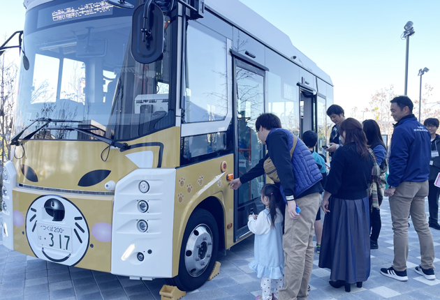 市内の公共交通について協議する豊川市交通協議会は6日、イオンモール豊川を会場に公共交通フェスタを開催し、11日から26日にかけて実証実験を行う自動運転バスの車両を展示した。
