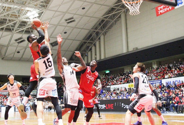 第2戦は、第1クオーター(Q)こそ互角の展開だったが、第2Qから三遠が攻勢を強めてリードを奪った。後半は三遠の猛攻で一時30点差の場面もあったが、最後は4点差まで詰め寄られて何とか逃げ切った。