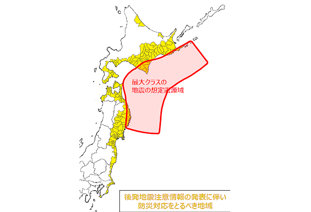 後発地震注意情報の対象地域は、北海道根室沖から東北地方三陸沖にかけての想定震源域に近い7道県の182市町村。すぐに逃げられる態勢の維持や非常持ち出し品の常時携帯、避難場所や避難経路、家族との連絡手段の再確認、家具の固定や非常食の備蓄などを促している。